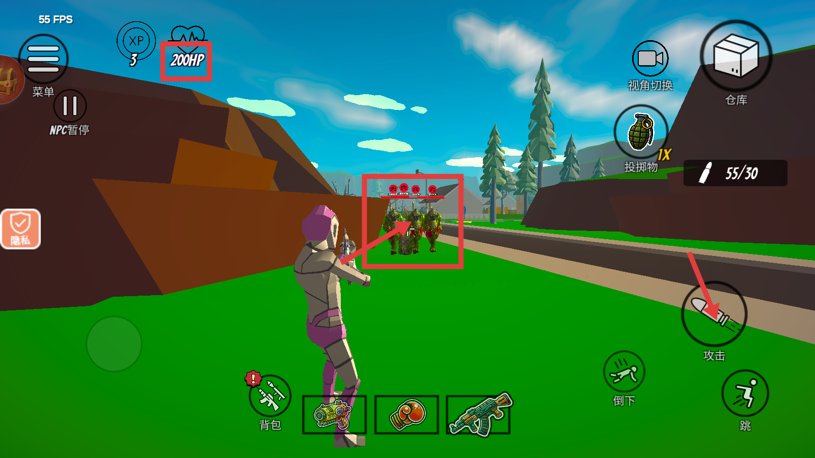 3、遇到敌人时,注意自身【200HP】的血量,瞄准敌人持续点击攻击按钮,消耗敌人血量。