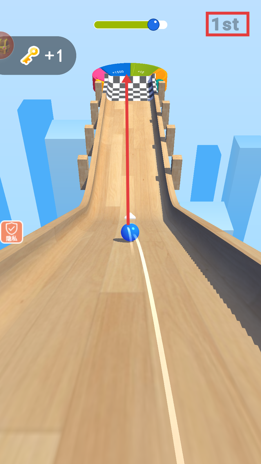 3、保持小球在赛道中线,全力冲向终点,争取拿到【1st】名次,获取更高积分奖励。