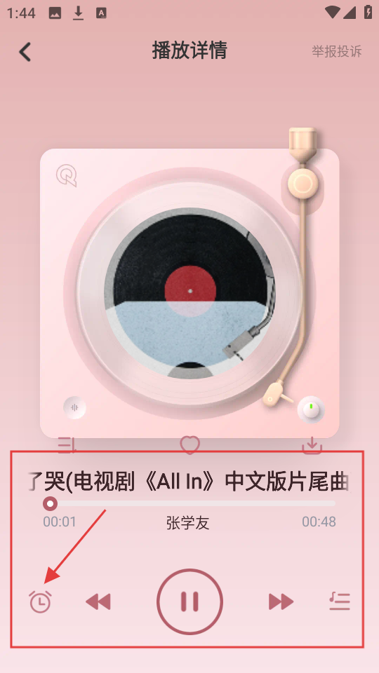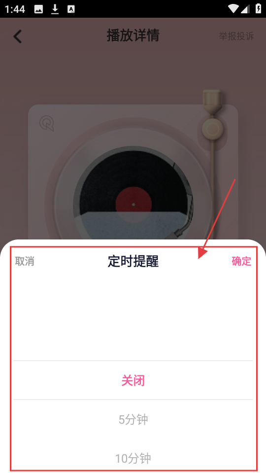 3、在播放详情页,有点定时图标,进入定时提醒设置页面,可设置播放时长。