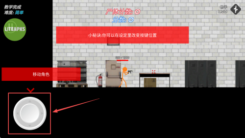 2、如何完成教学?看完提示后点击“移动角色”,简单难度下分数归0即可。
