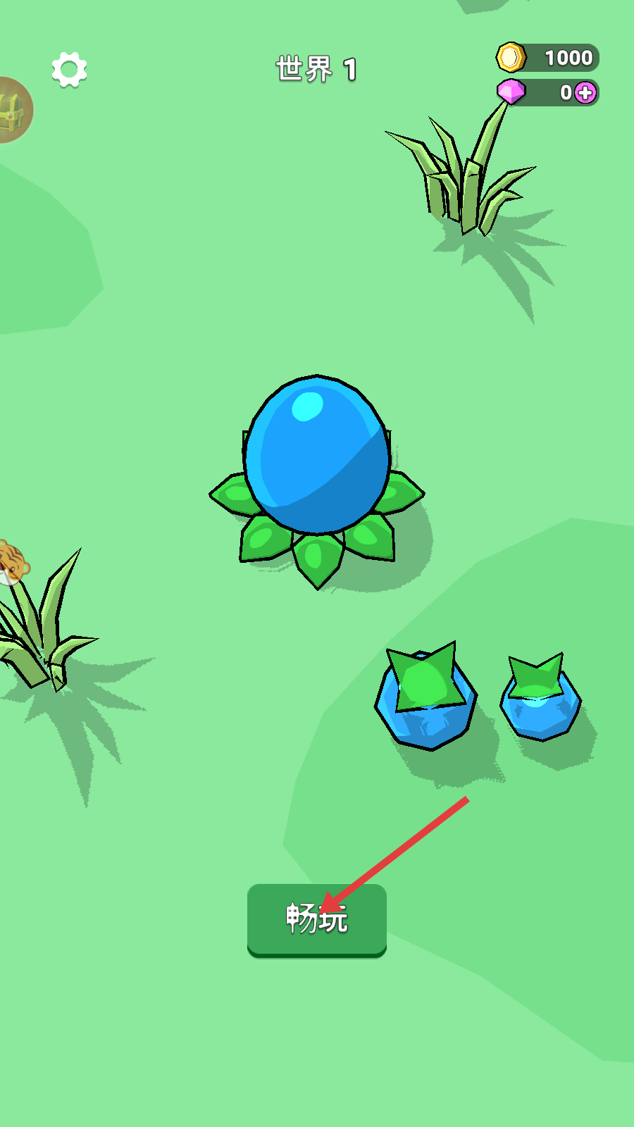 1、进入【世界1】,初始拥有金币-1000,点击【畅玩】按钮,开启游戏探索之旅。
