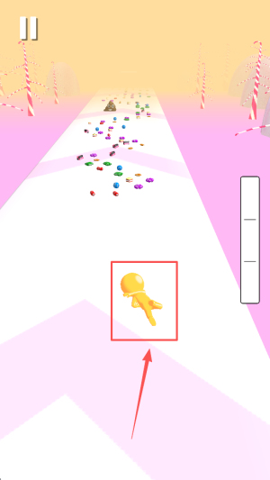 2、接着,收集路径上的糖果和道具,通过滑动屏幕来控制角色。