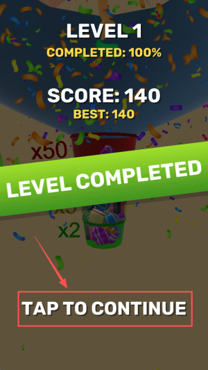4、最后,完成关卡后点击“TAP TO CONTINUE”继续下一关。
