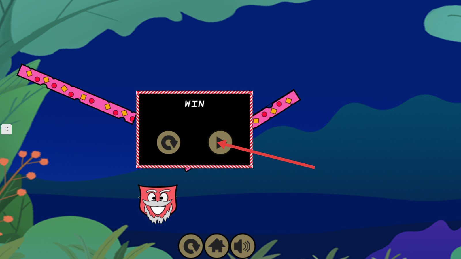 4、成功收集星星并达成目标后,界面显示【WIN】,点击箭头按钮进入下一关。