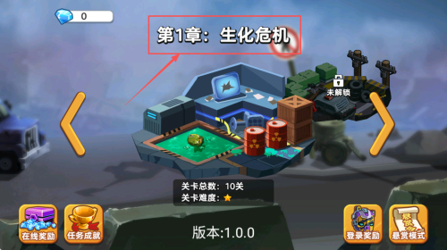 1、如何进入章节?点击“第1章:生化危机”,查看10关难度与在线奖助后进入。