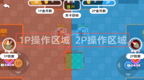 3、如何进入第1关?查看1P/2P金币数,点击“第1关”进入操作区域。