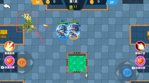 4、如何释放技能?战斗中点击1P“急速射击”或2P“精准打击”,用DI血量回满保持生存。