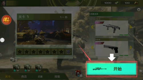 1、如何进入关卡1?点击“关卡1”后再按“开始”即可进入战斗。