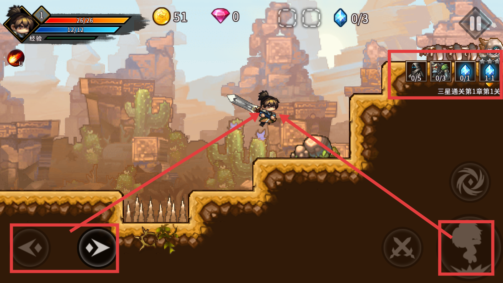 2、在关卡内,使用左侧移动按钮控制角色移动,点击右侧技能按钮,可让角色释放技能,探索场景推进流程。