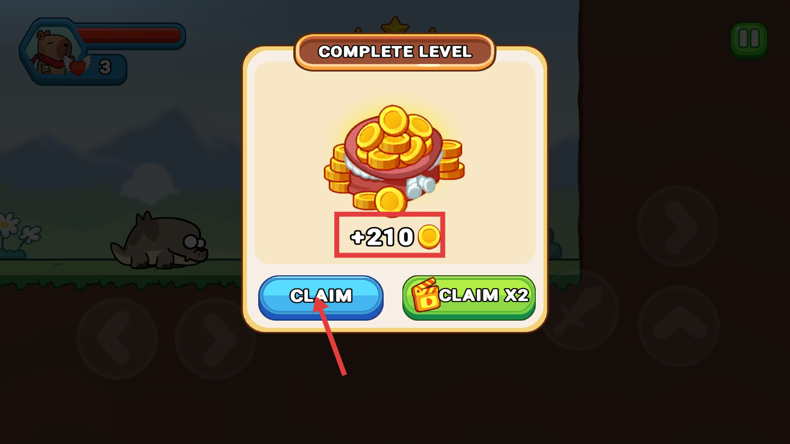 4、探索收集过程:在各个地图中奔跑探险,收集金币和道具资源,为水豚获取全新装备提升能力。