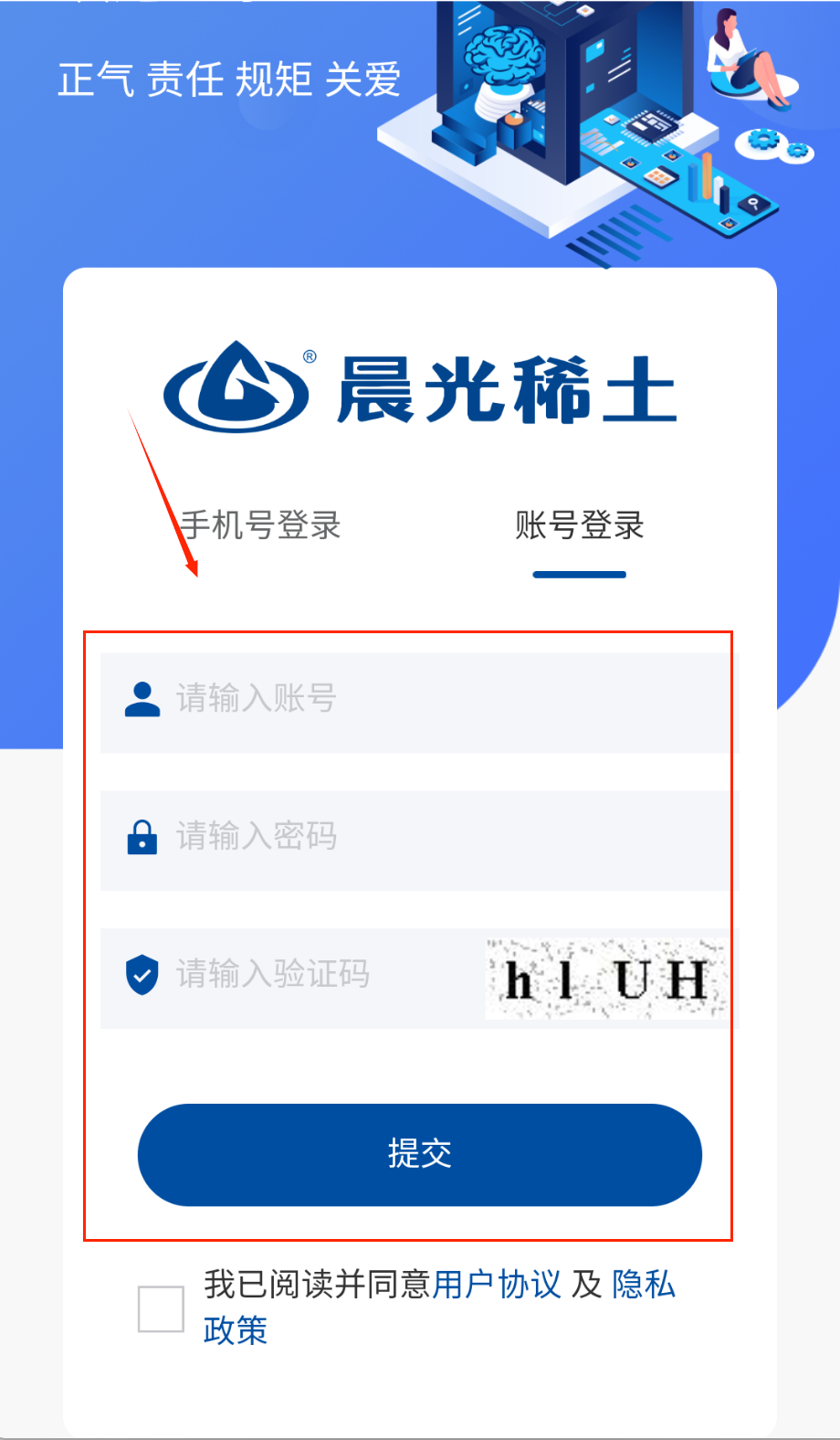 3、 登录时有手机号和账号两种方式:选账号登录就填账号密码和验证码(像图中5W5A这种),选手机号登录就输手机号收短信验证码。