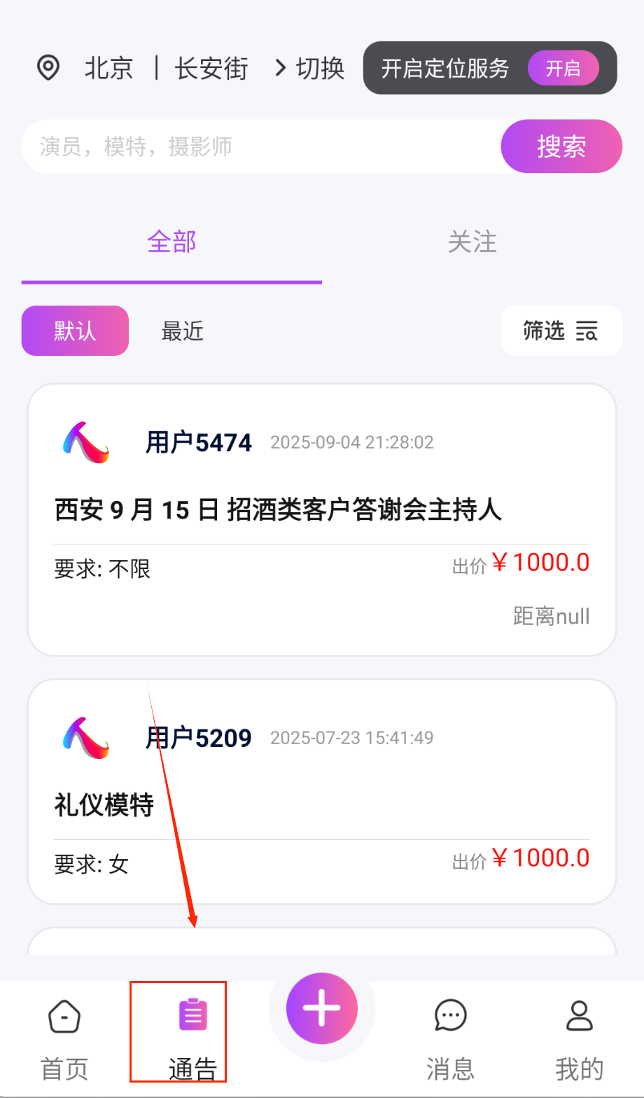 2、在通告中心实时查看最新推送的各类散职和全职招募信息,便于根据个人时间及能力灵活选择工作机会。