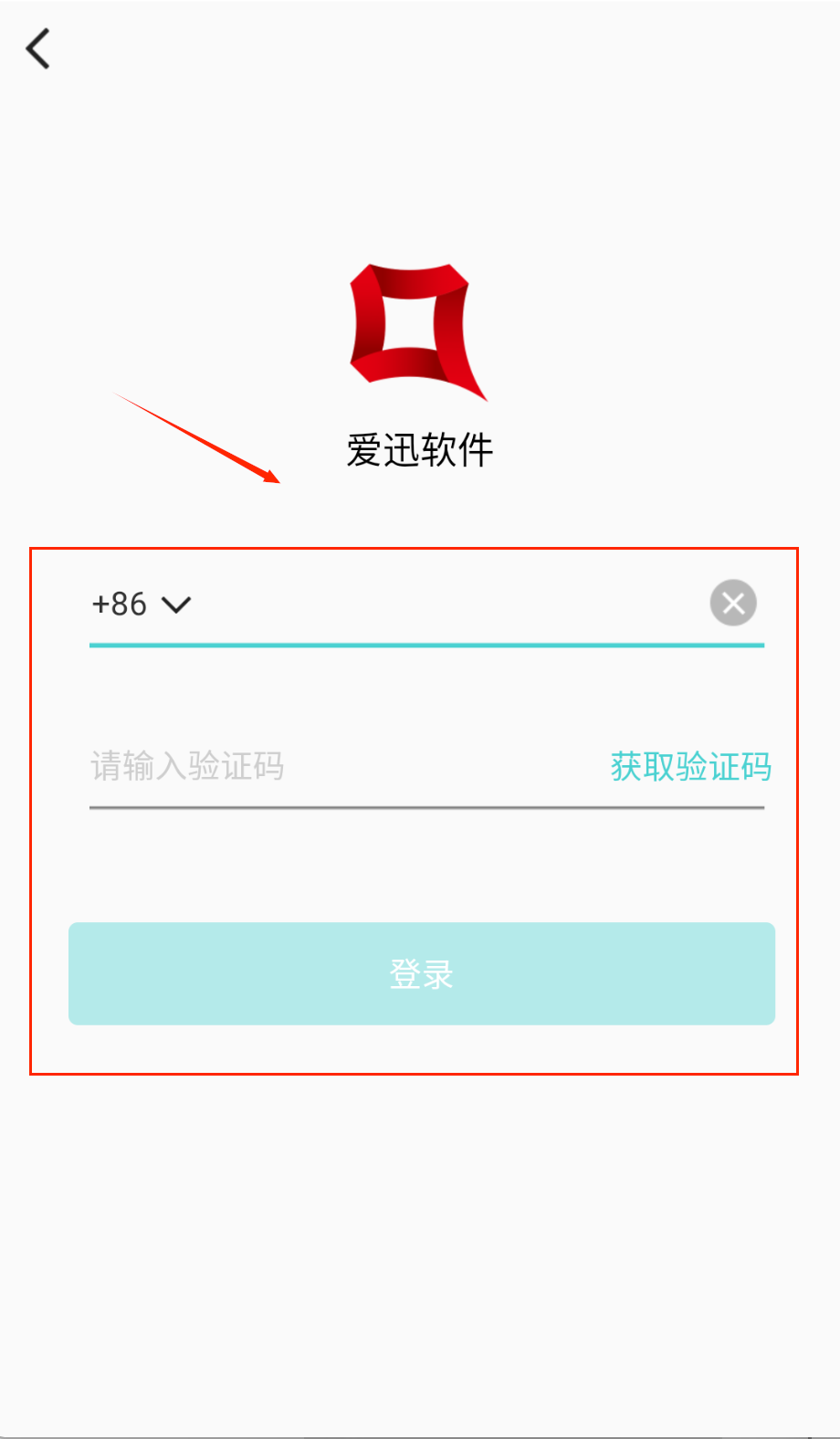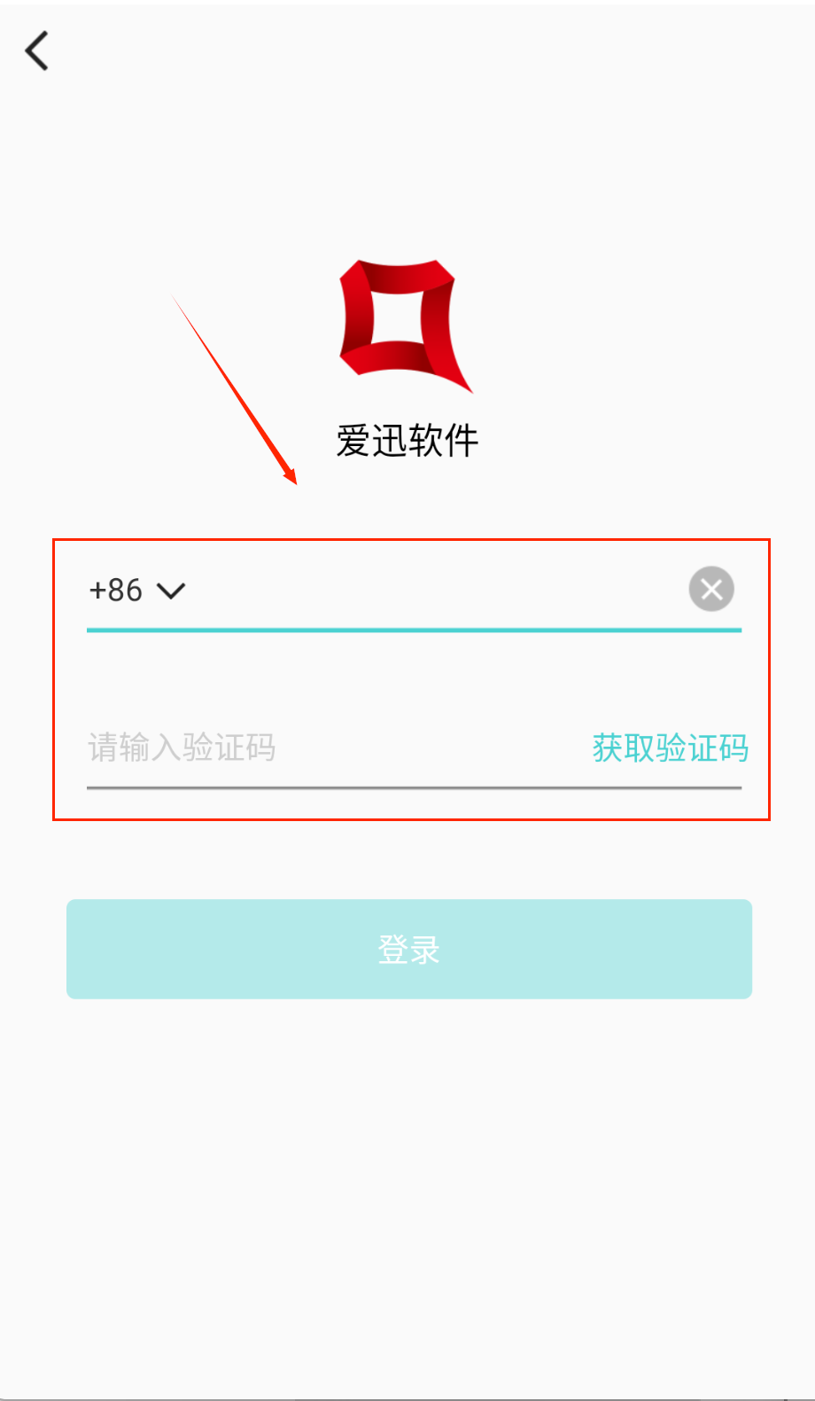 1、 打开爱迅软件后,中间有个醒目的红色方块logo和“爱迅软件”字样,在手机号输入框里输入你的号码(默认是+86开头)。