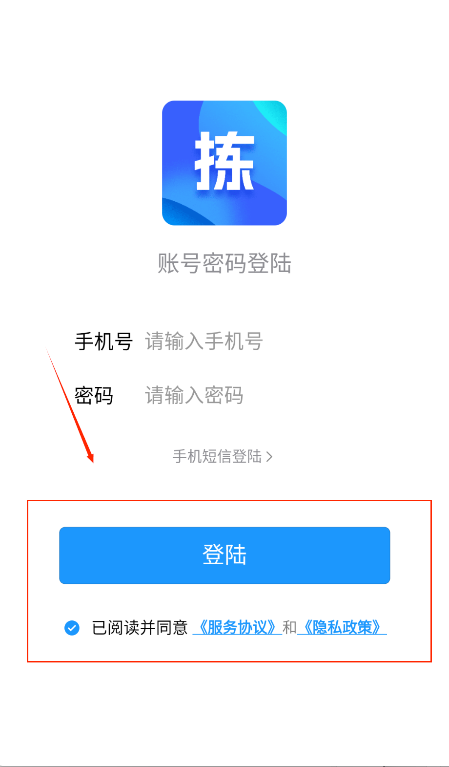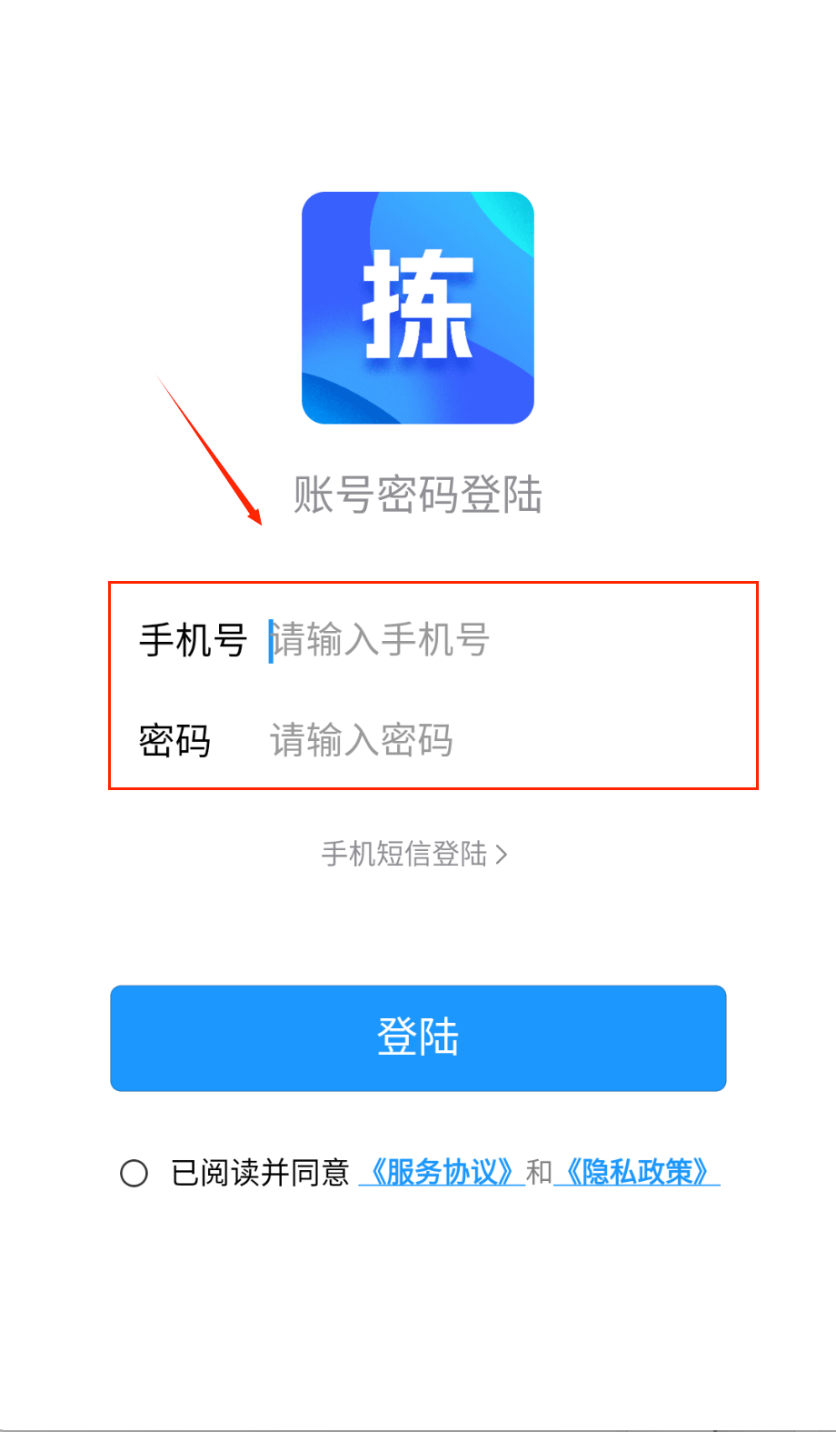 2、 登录时打开软件看到蓝色顶部写着“请登录”的界面,在“用户名”框输入你的账号,在“密码”框输入密码,点击那个蓝色的“登录”按钮就可以啦。