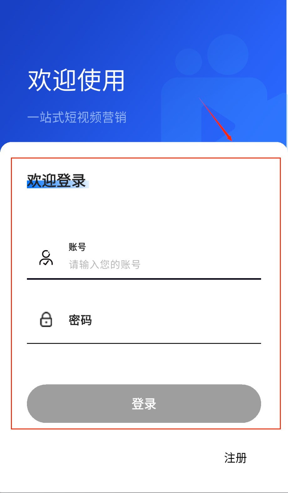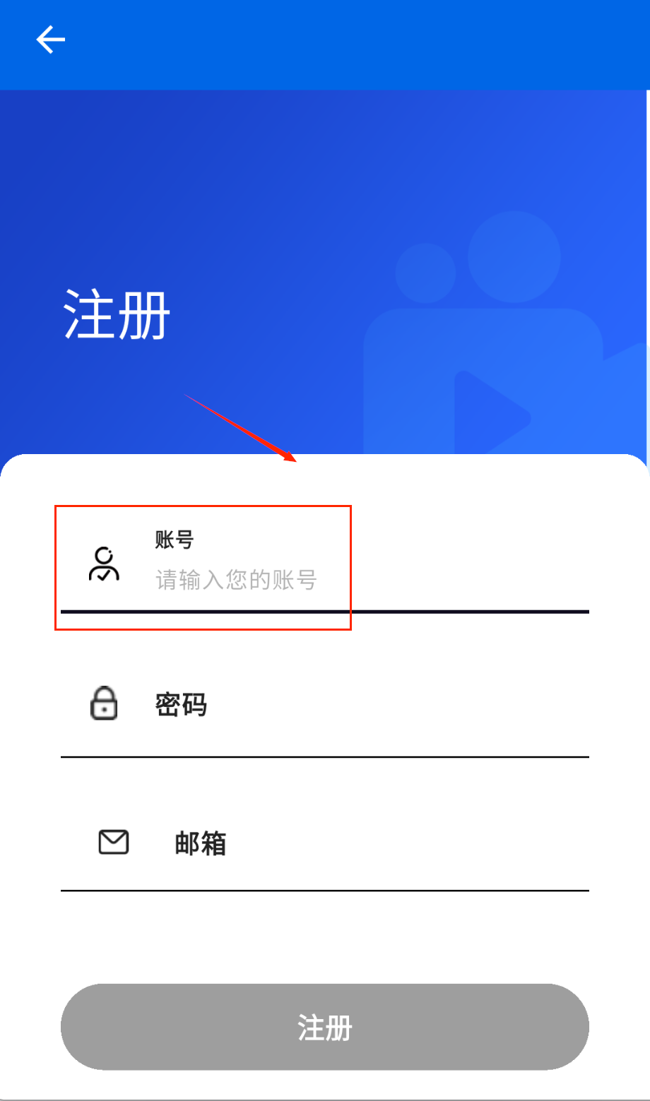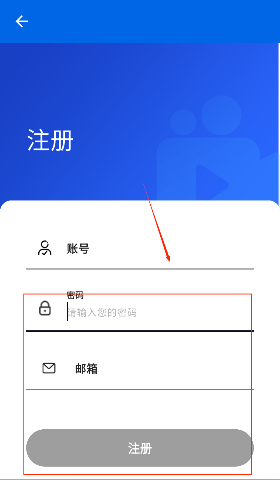1、 打开亿视推APP后呀,你会看到一个蓝色的注册页面,顶部通常会有大大的“注册”两个字,非常醒目,页面中间有几个空白框等着你填写啦。