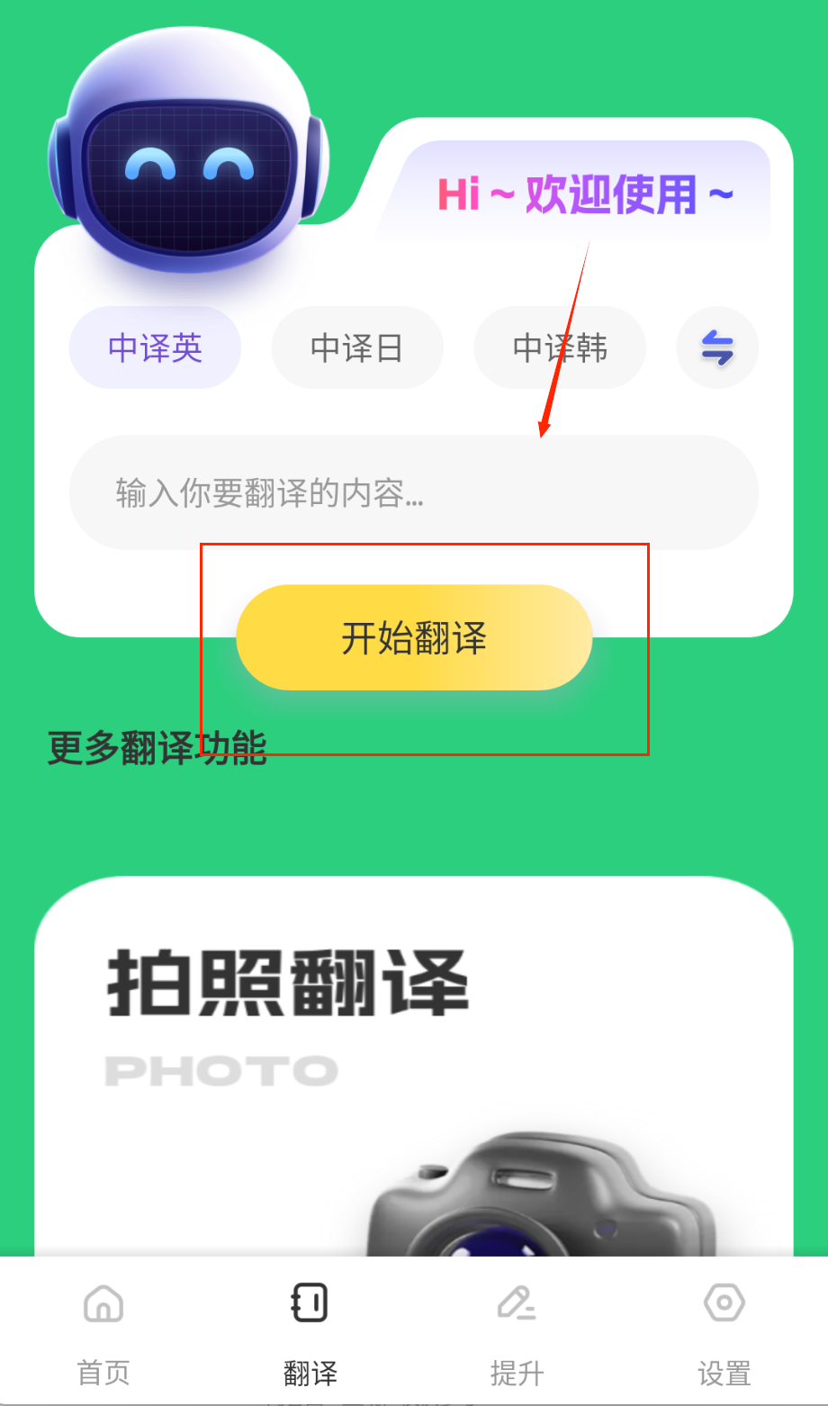 3、点击翻译图标启动智能识别功能,可通过麦克风实时录入英语对话即时显示中文译文,亦可手动输入长文本进行精准互译。