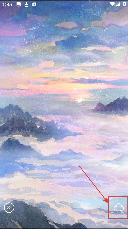 2、查看画作时,若想保存,点击右下角云朵样式的下载按钮,就能把这幅好看的画保存下来啦。