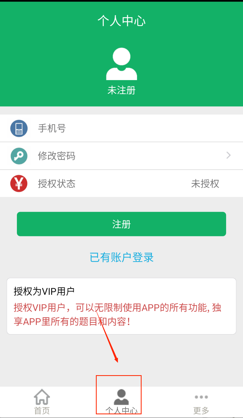 1、打开应用后,首先点击“同意并继续使用”按钮进入首页。在底部菜单栏中找到“更多”选项并点击进入。该界面后选择“清空做题记录”功能按键。