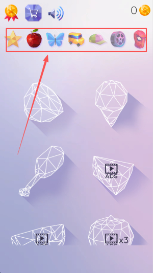 1、首先,点击游戏界面顶部的图标选择不同的形状。