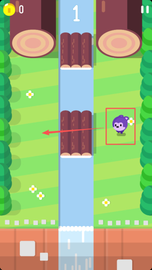 2、把控跳跃时机:观察河上浮动木头的位置与移动节奏,点击屏幕控制小动物跳跃,确保精准落在木头上,避免掉入河水。