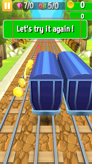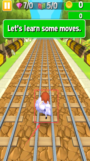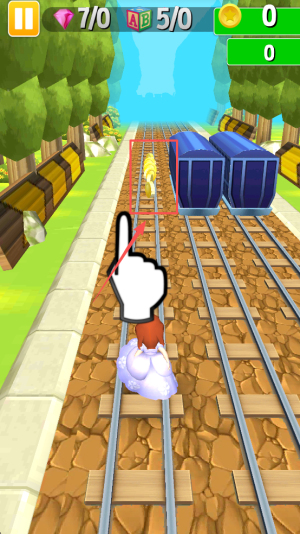 3、然后,通过点击屏幕来避开障碍物,如火车,同时收集金币。