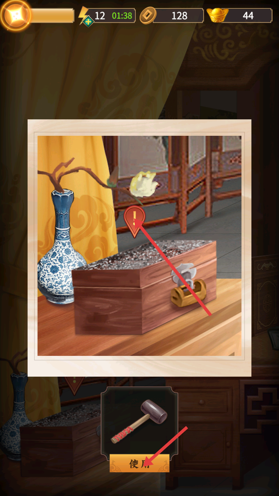 4、遇到带锁木匣时,选择锤子道具并点击“使用”,就能打开木匣,获取其中的物品或线索。