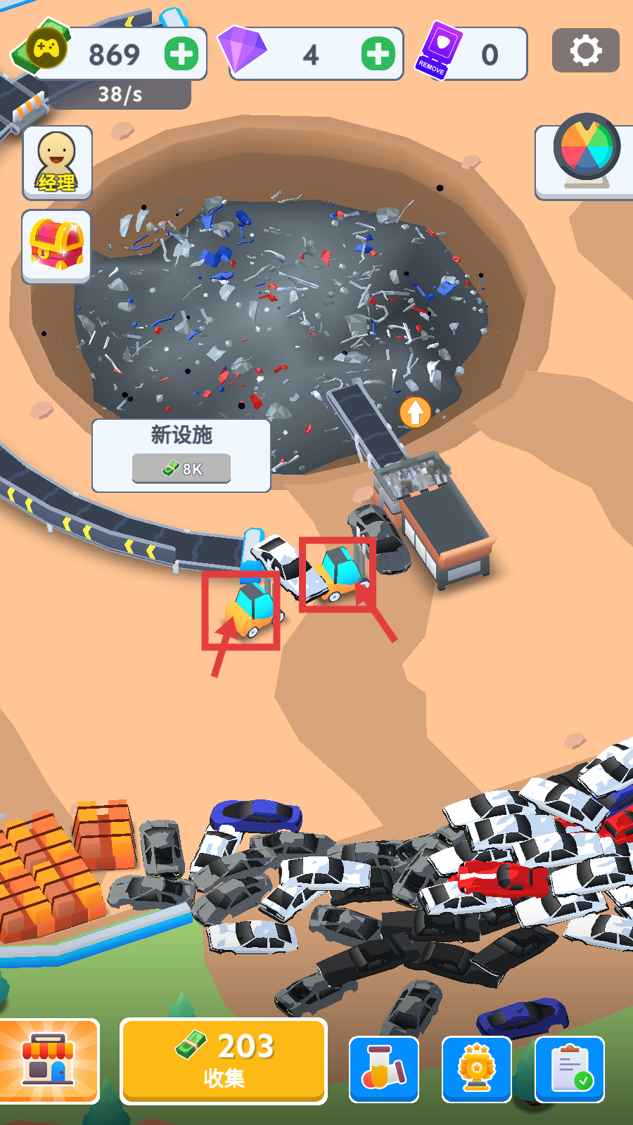 3、增加叉车数量,让多辆叉车同时运输废弃车辆,提升运输效率,加快资源积累和金币获取速度。