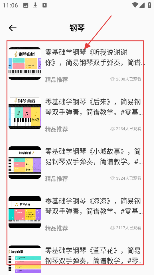 2、进入钢琴分类,有《听我说谢谢你》等零基础钢琴教学,选喜欢的就能学,轻松上手。