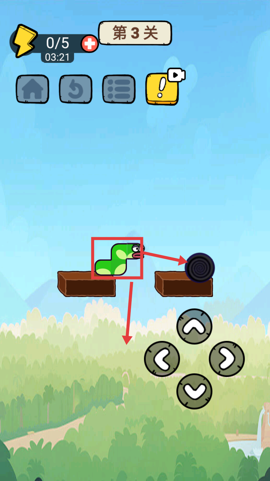 3、移动小蛇时,需精准操控方向键,让小蛇平稳在平台上移动,避免因操作失误导致小蛇掉落。