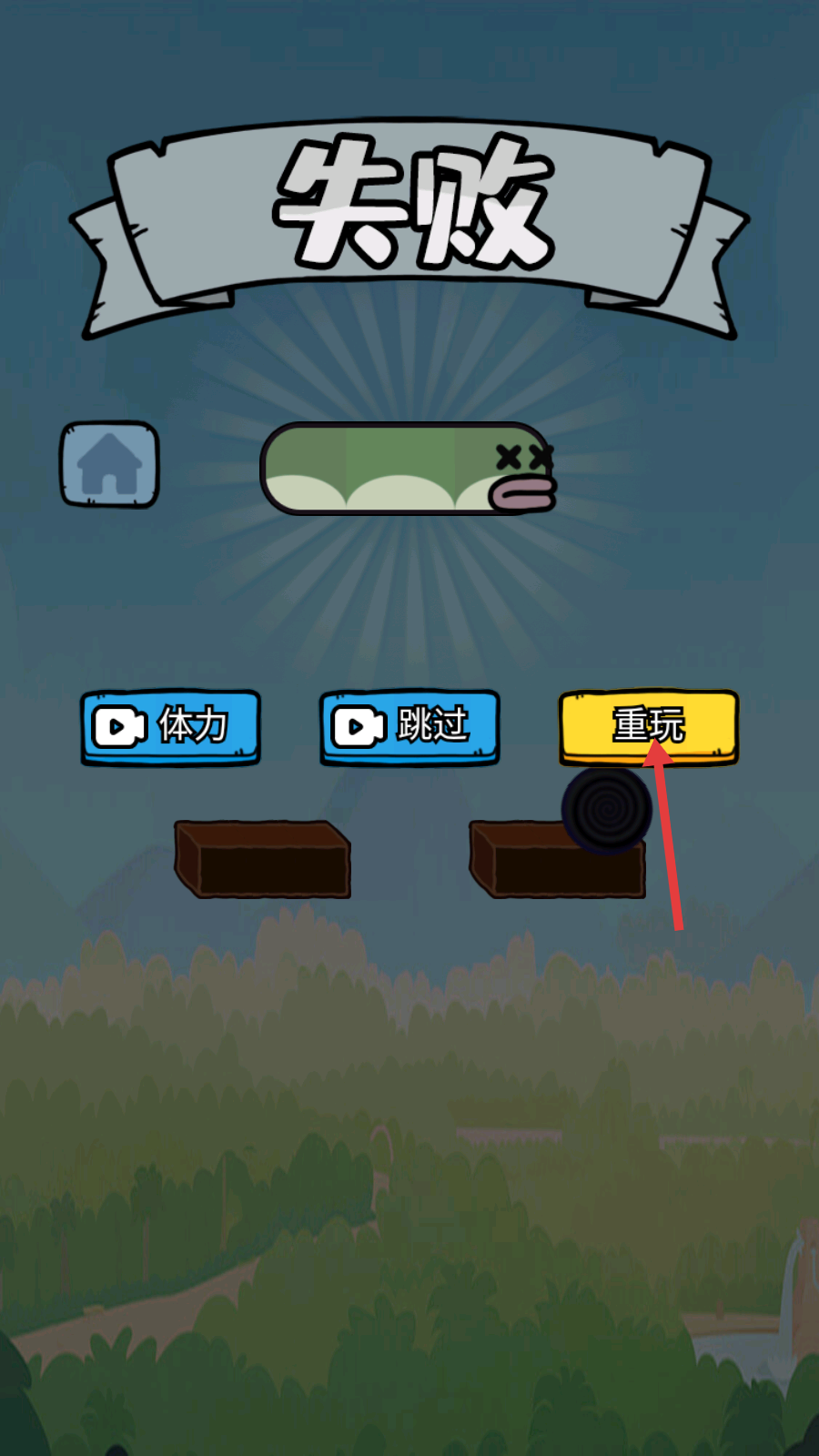 4、若挑战失败,界面显示【失败】时,点击黄色【重玩】按钮,可重新开始第3关的挑战。