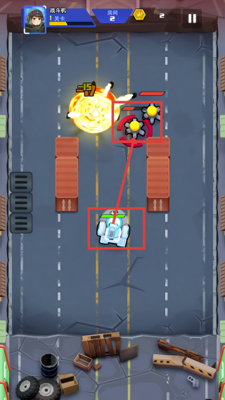 3、战斗过程中,操控战机瞄准齿轮状敌人发射攻击,借助升级后的技能(如爆炸效果),对敌人造成大量伤害,推进关卡进度。