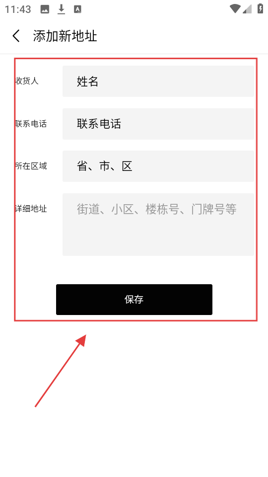 4、添加新地址时,填好收货人、联系电话等信息,点【保存】,地址就添加好啦,超简单。