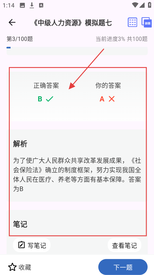 4、做完题看结果,对比正确答案和自己的答案,再看解析,把知识点记牢。