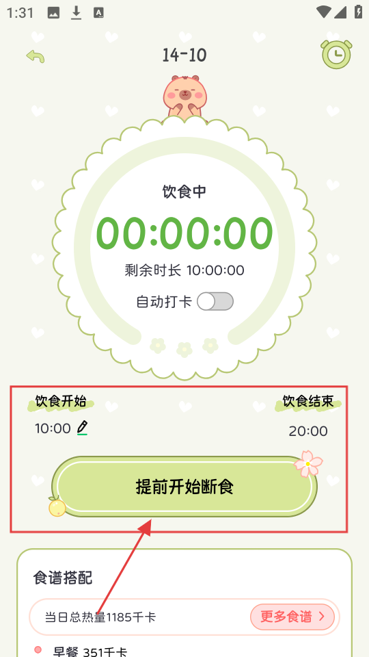 4、计划执行中,能看到饮食时长,要是想提前断食,点【提前开始断食】就行。
