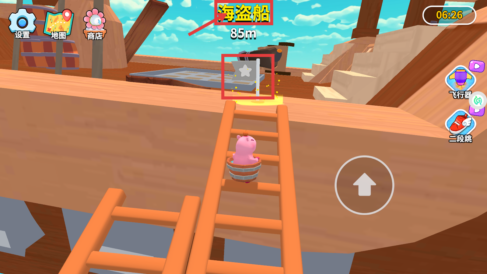 2、抵达【海盗船】区域,沿梯子向上移动,靠近并触碰带有星星的标识点,以此推进海盗船的探索进度。