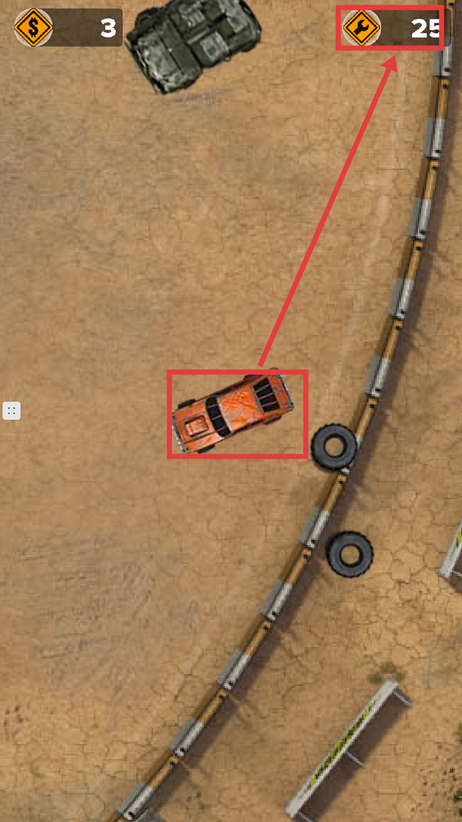 3、在赛道行驶时,留意右上角带扳手标识的资源,平稳操控车辆沿赛道行进,尽可能获取该资源。