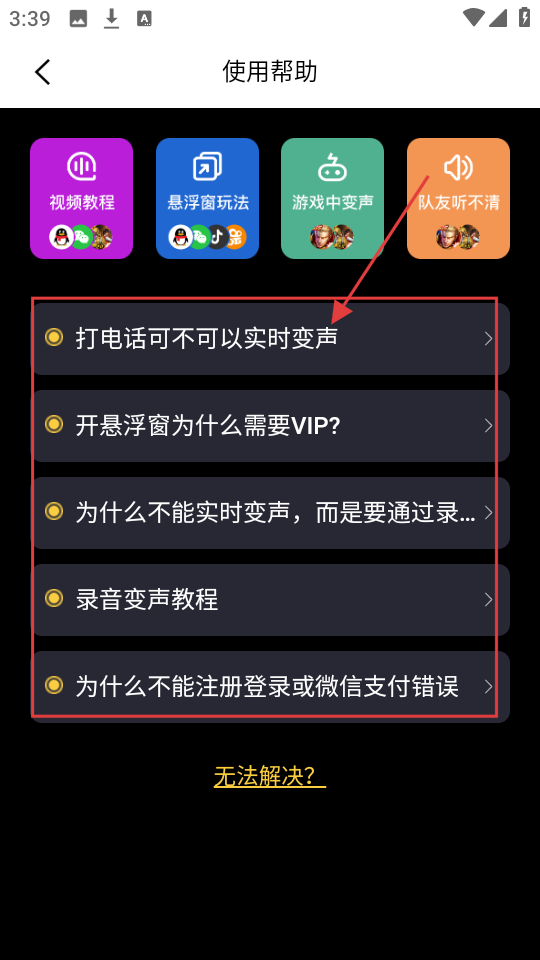 4、使用帮助页有各类问题解答,遇到疑问,选对应的问题,查看解决方法,超方便。