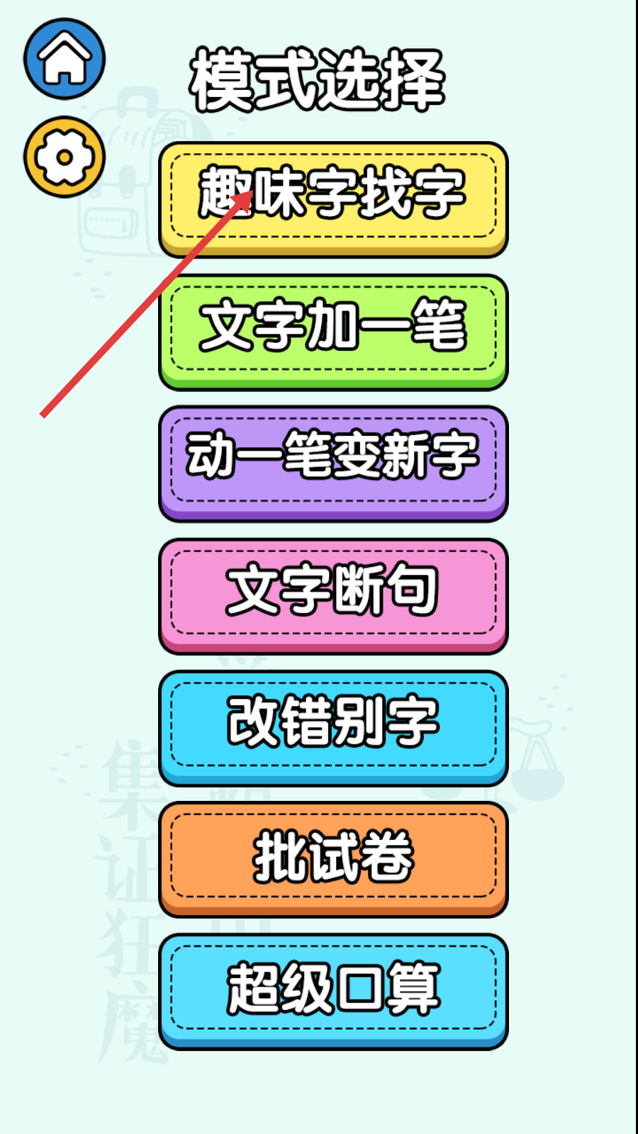 1、进入游戏后,在模式选择界面点击【趣味字找字】,即可开启文字查找的关卡挑战。