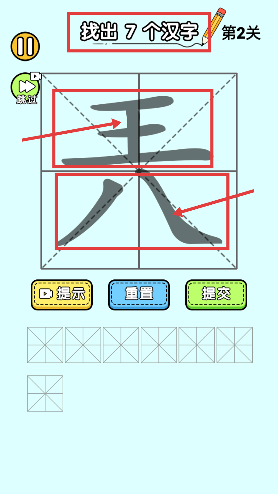 2、在“找出7个汉字”的关卡中,仔细观察画面里的文字部件,像“王”“八”这类明显的汉字可优先找出。