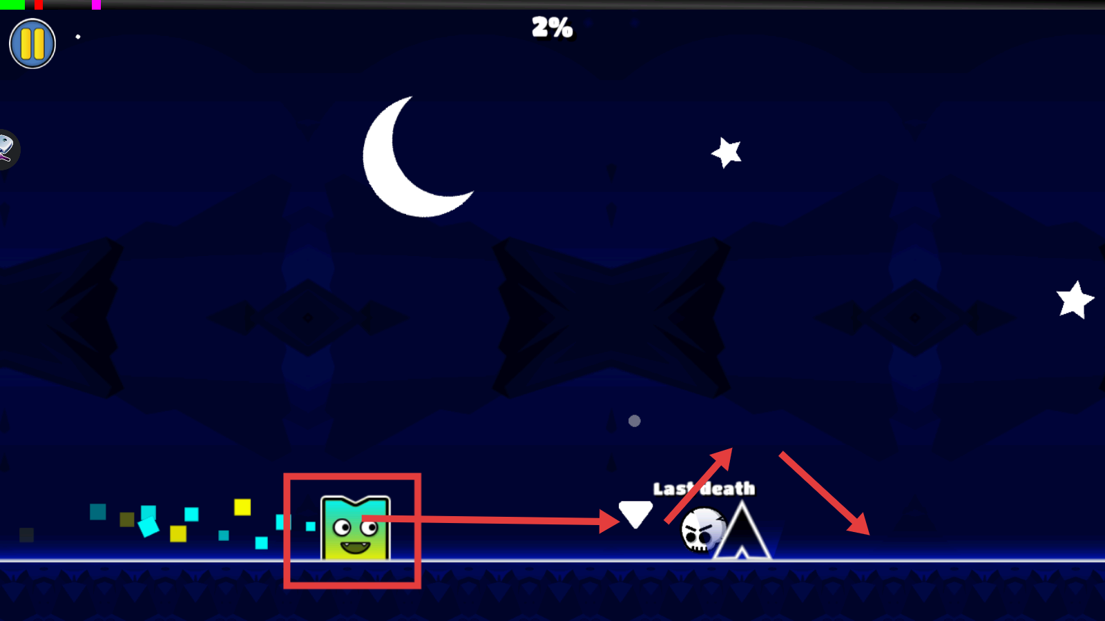 2、挑战中操控角色前进,留意【Last-death】标识的障碍位置,避开尖刺等陷阱,逐步推进进度。