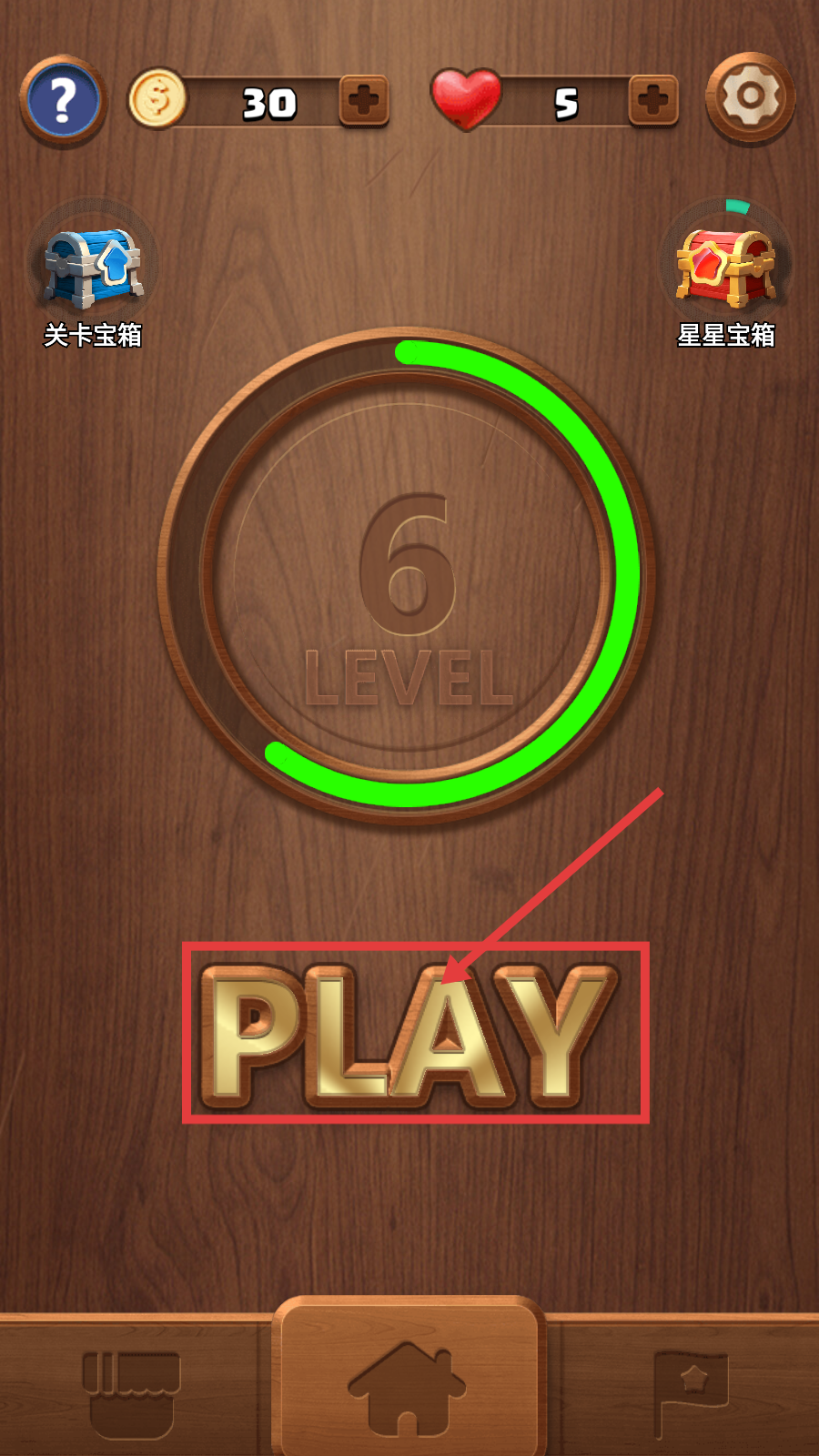 1、在关卡选择界面,点击金色的【PLAY】按钮,进入第6关的方块消除挑战。