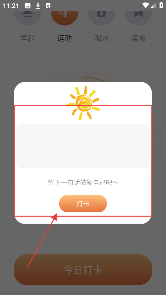 3、打卡弹窗可留下鼓励自己的话,写完点【打卡】,完成今日打卡,超有仪式感。