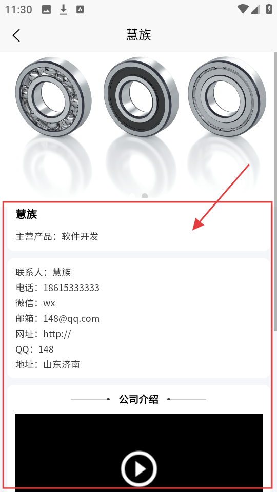 4、企业详情页有主营产品、联系人等信息,还有公司介绍,想合作或了解企业看这儿。