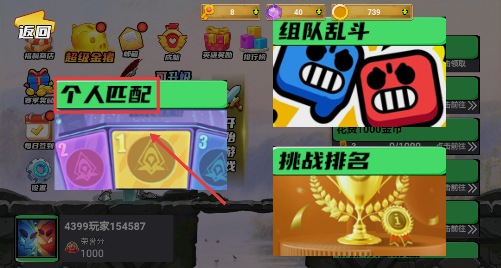 1、在界面中点击【个人匹配】选项,进入角色对战的匹配流程,准备参与战斗。