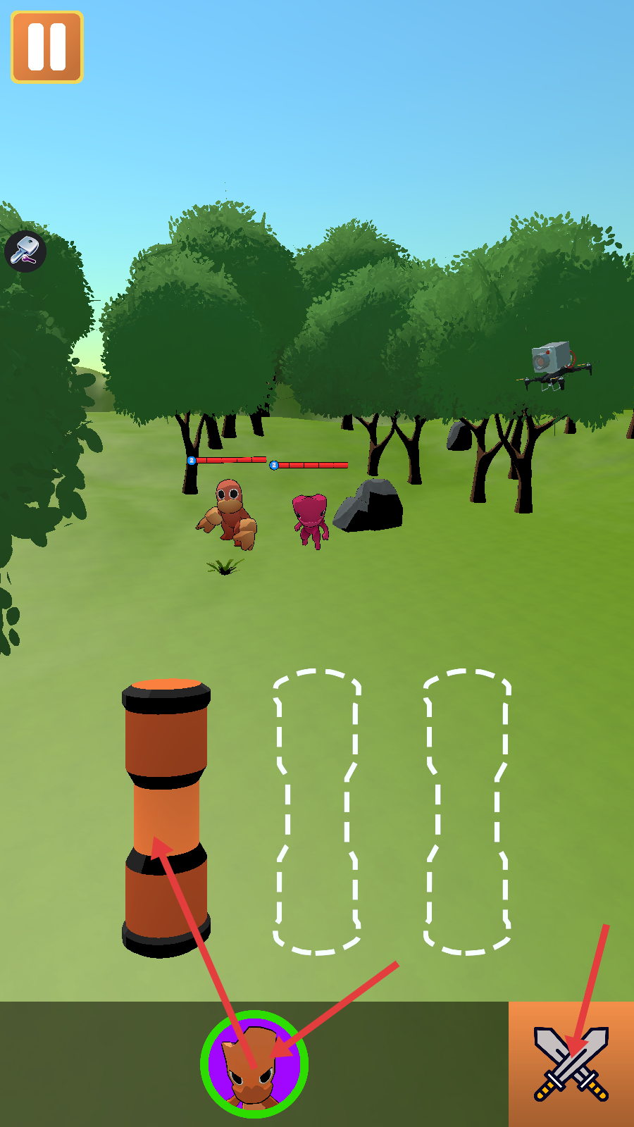 2、战斗时,先选择左侧道具,再点击右下角双剑图标发起攻击,同时注意场上敌人位置,做好进攻准备。