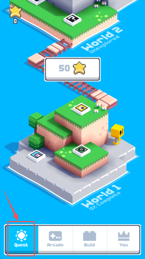 1、首先,点击“Quest”按钮开始游戏并选择关卡。