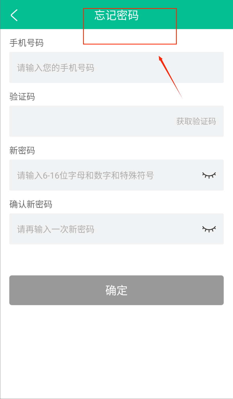 3、 万一真的需要重置密码,点击“忘记密码?”后进入专门页面,按顺序输入你的手机号码,点击“获取验证码”按钮接收短信验证码并填入。