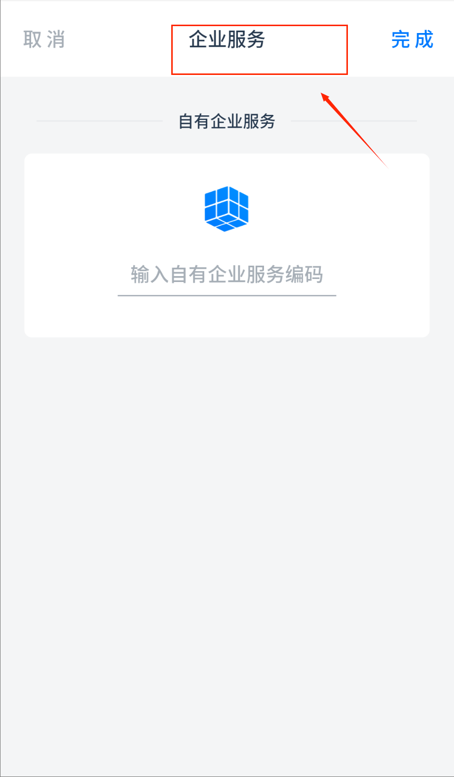 2、 如果需要绑定企业服务,在软件里找到“企业服务”选项进入,页面中间会显示“自有企业服务”字样和一个蓝色立方体图标。