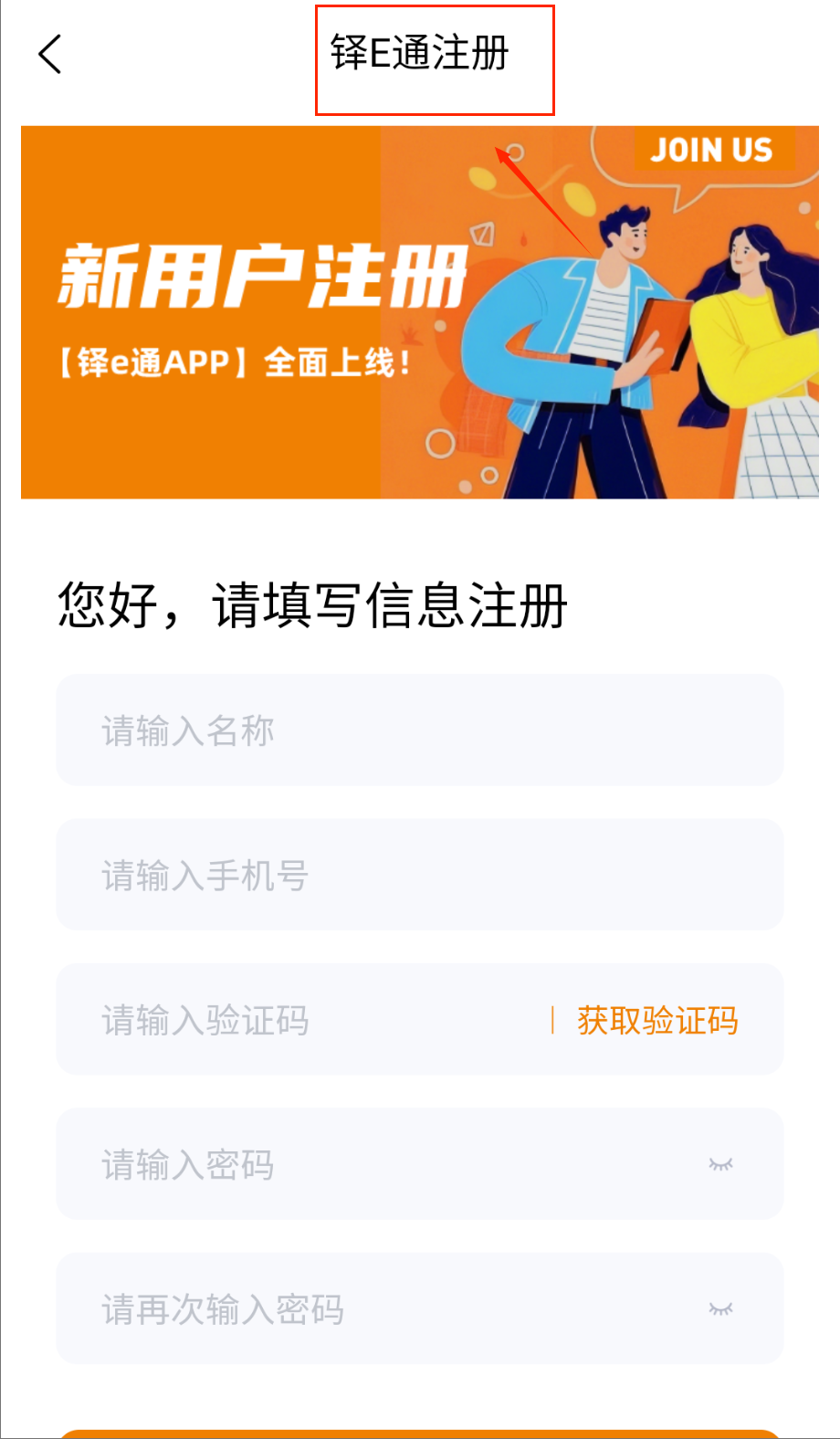 1、 注册新账号很简单呢,打开软件看到橙色背景的注册页,在“请输入名称”框填店铺名或姓名,“请输入手机号”框输11位号码。