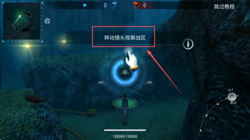 2、如何观察战区?选择“跳过教程”后转动镜头查看四周敌情。